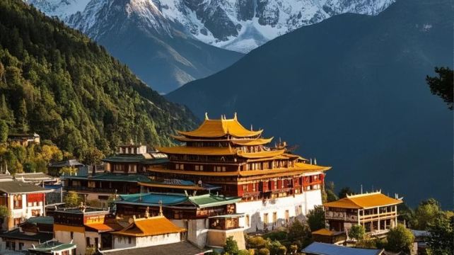 独克宗古城—非遗唐卡体验-藏式风味餐-松赞林寺(需勾选附加升级)—乘车返回丽江(送至丽江古城周边酒店/丽江古城附近散团)